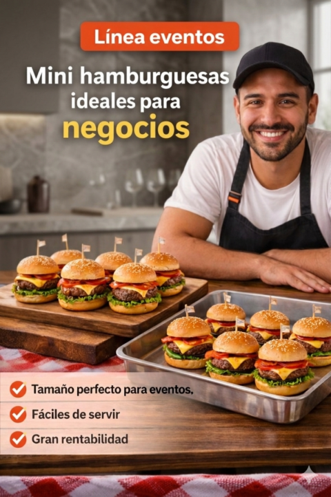Selecciona hamburguesas, mini hamburguesas o pan para hamburguesas según tu negocio.
