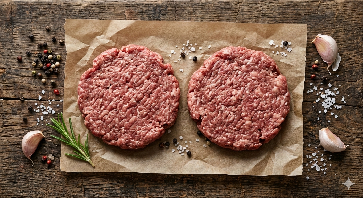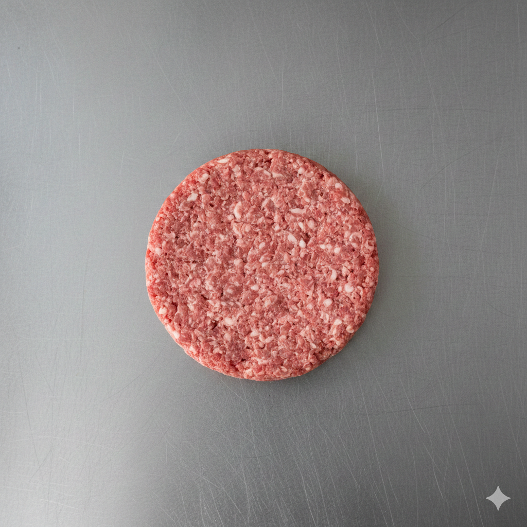Esta hamburguesa mixta 100% artesanal se elabora con una selección equilibrada de cortes de res (malaya, paleta, asado de tira) y cerdo (bondiola y panceta), logrando un perfil 70/30 que aporta jugosidad natural y sabor profundo.